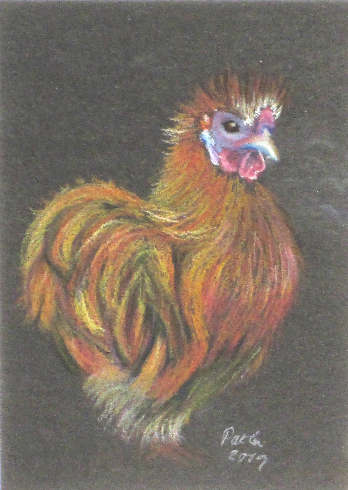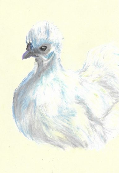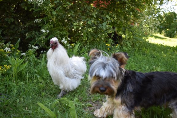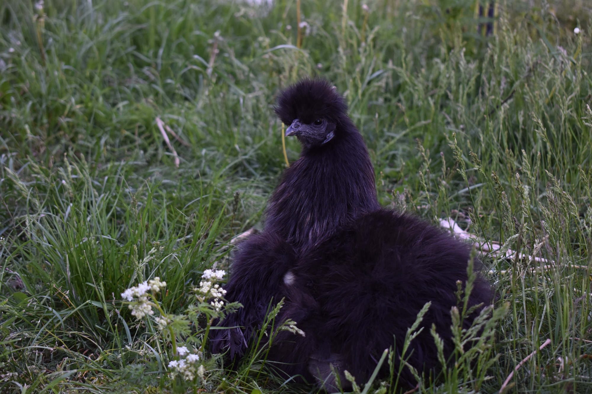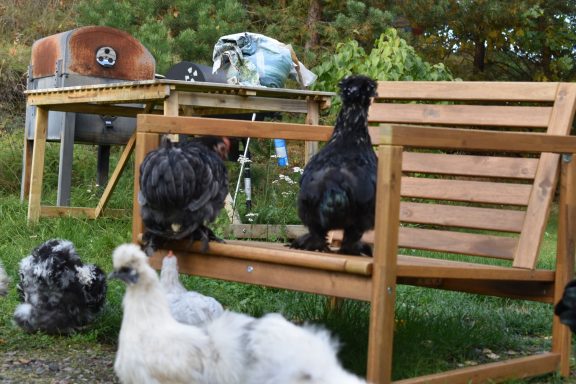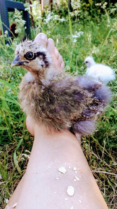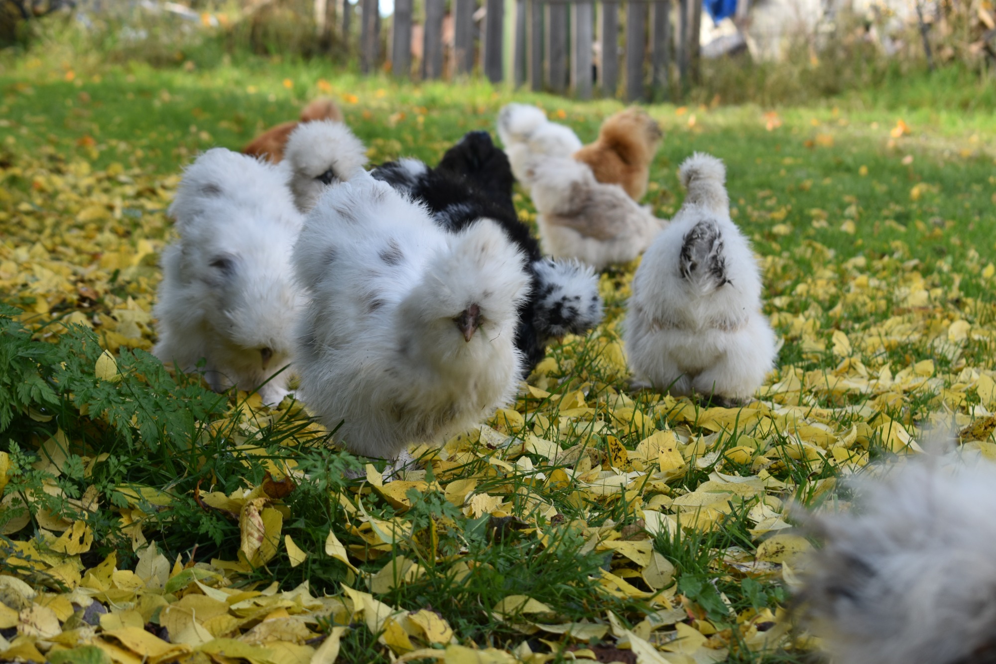 The hens are small, the roosters weigh only between 500-600 grams. Of course my chickens have access to a large hen house with a large outdoor area and in the summer they can also go freely on the lawn. They like to be hand-fed with corn. In the summer I pick berries, fruit and burn-nettles which I then dry or freeze so they get extra vitamins and sweets during the winter.