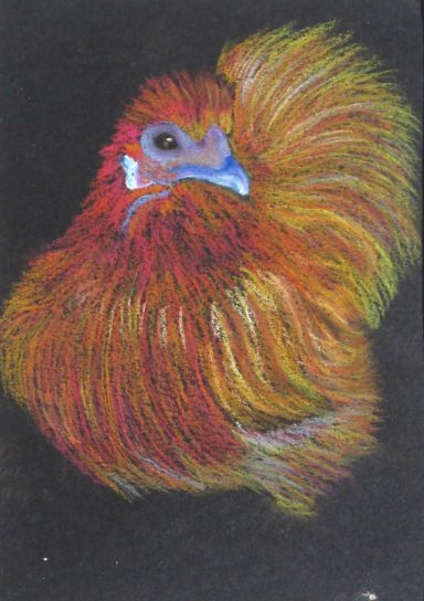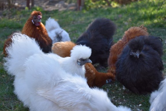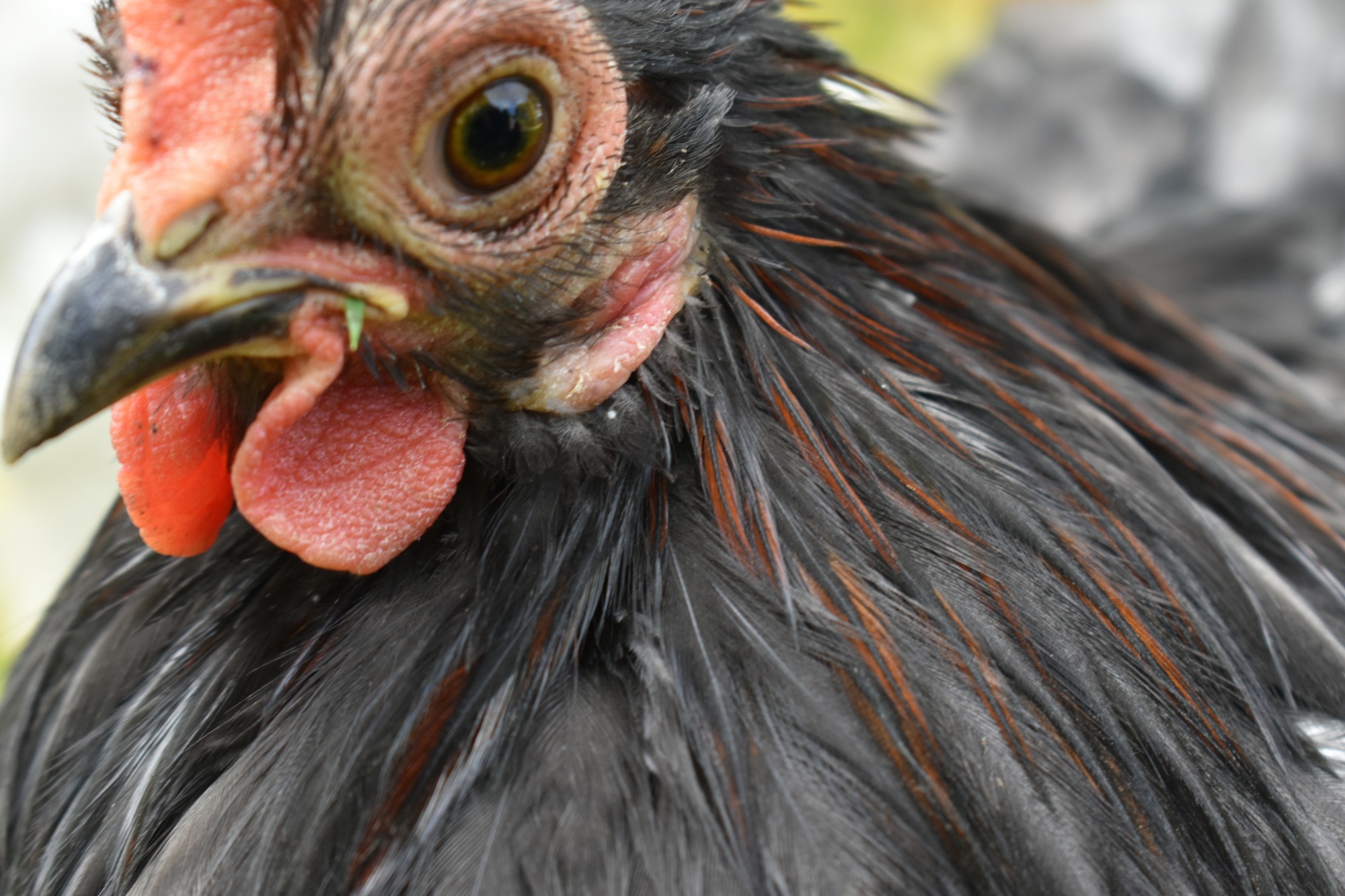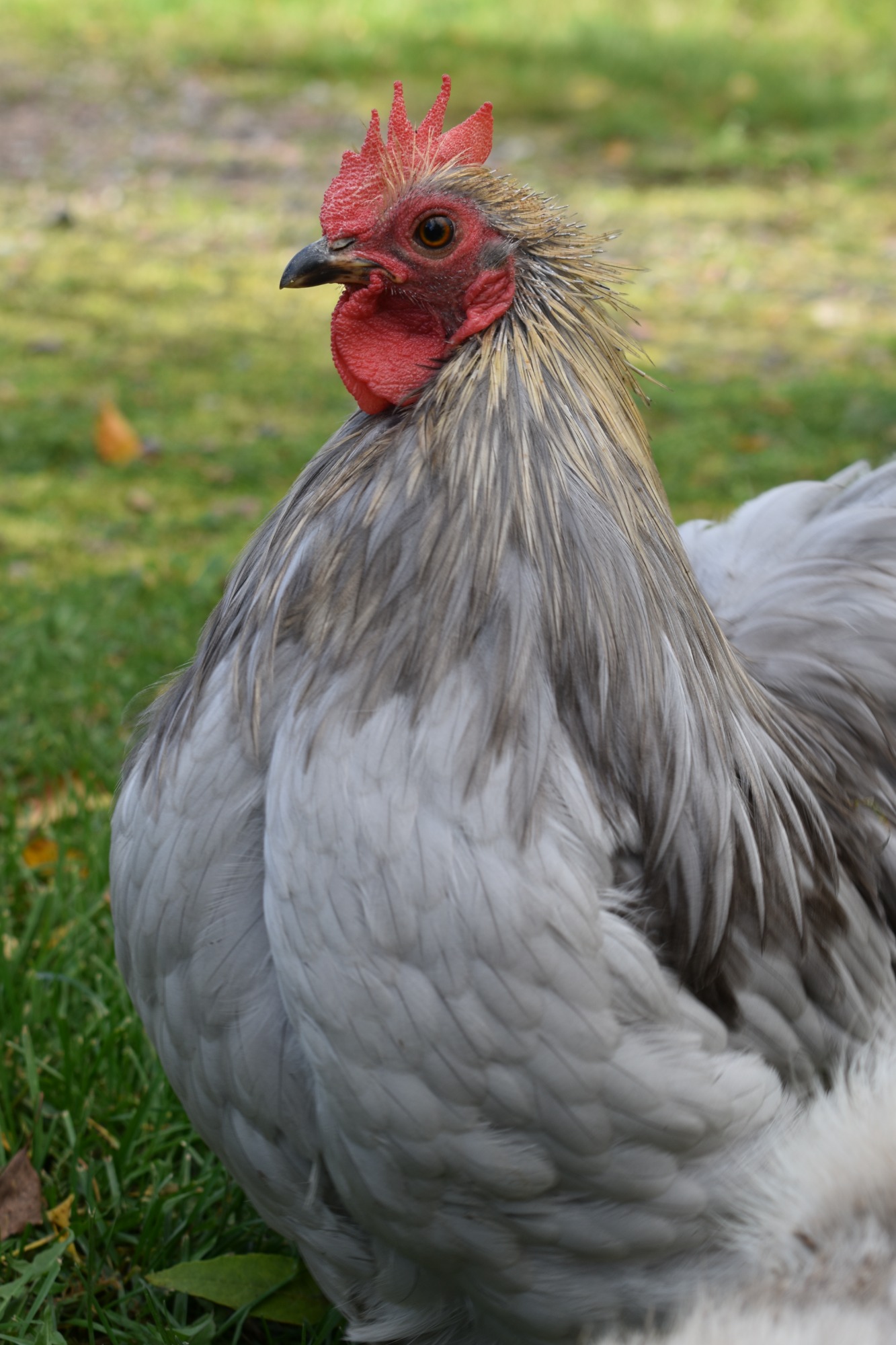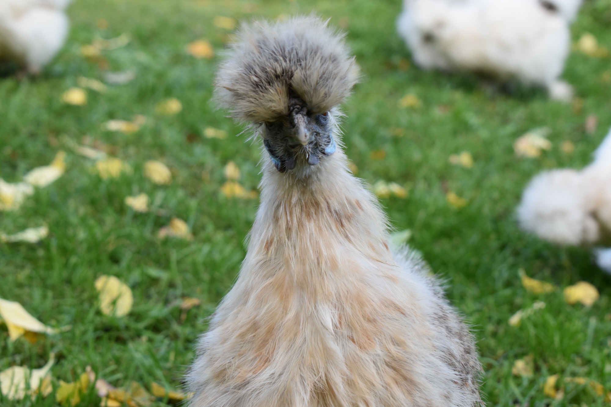 The hens are small, the roosters weigh only between 500-600 grams. Of course my chickens have access to a large hen house with a large outdoor area and in the summer they can also go freely on the lawn. They like to be hand-fed with corn. In the summer I pick berries, fruit and burn-nettles which I then dry or freeze so they get extra vitamins and sweets during the winter.