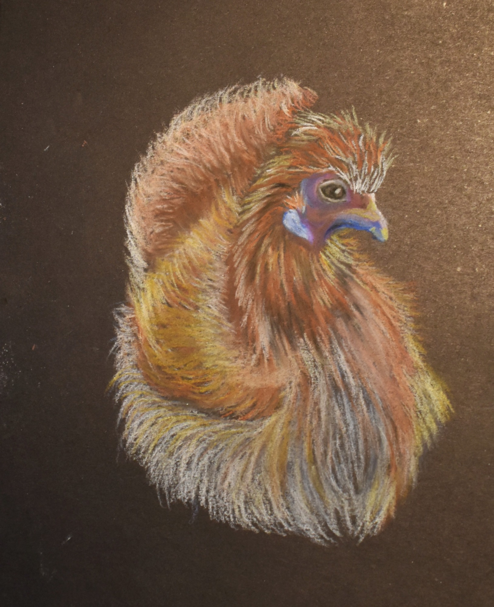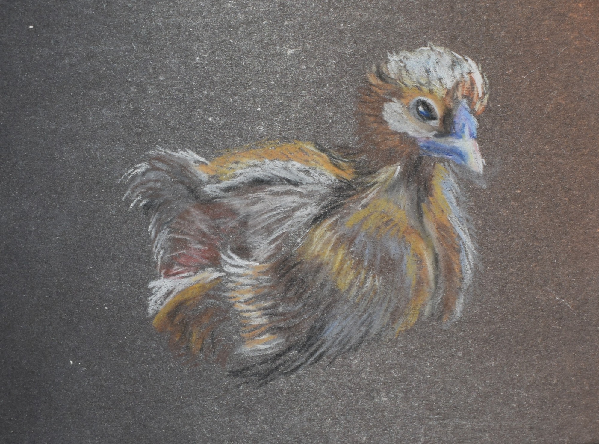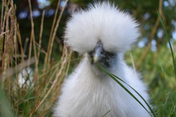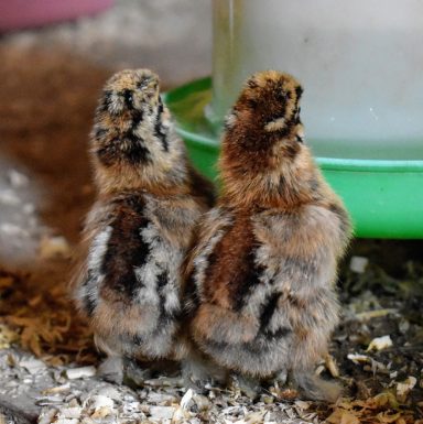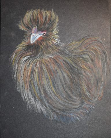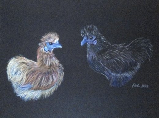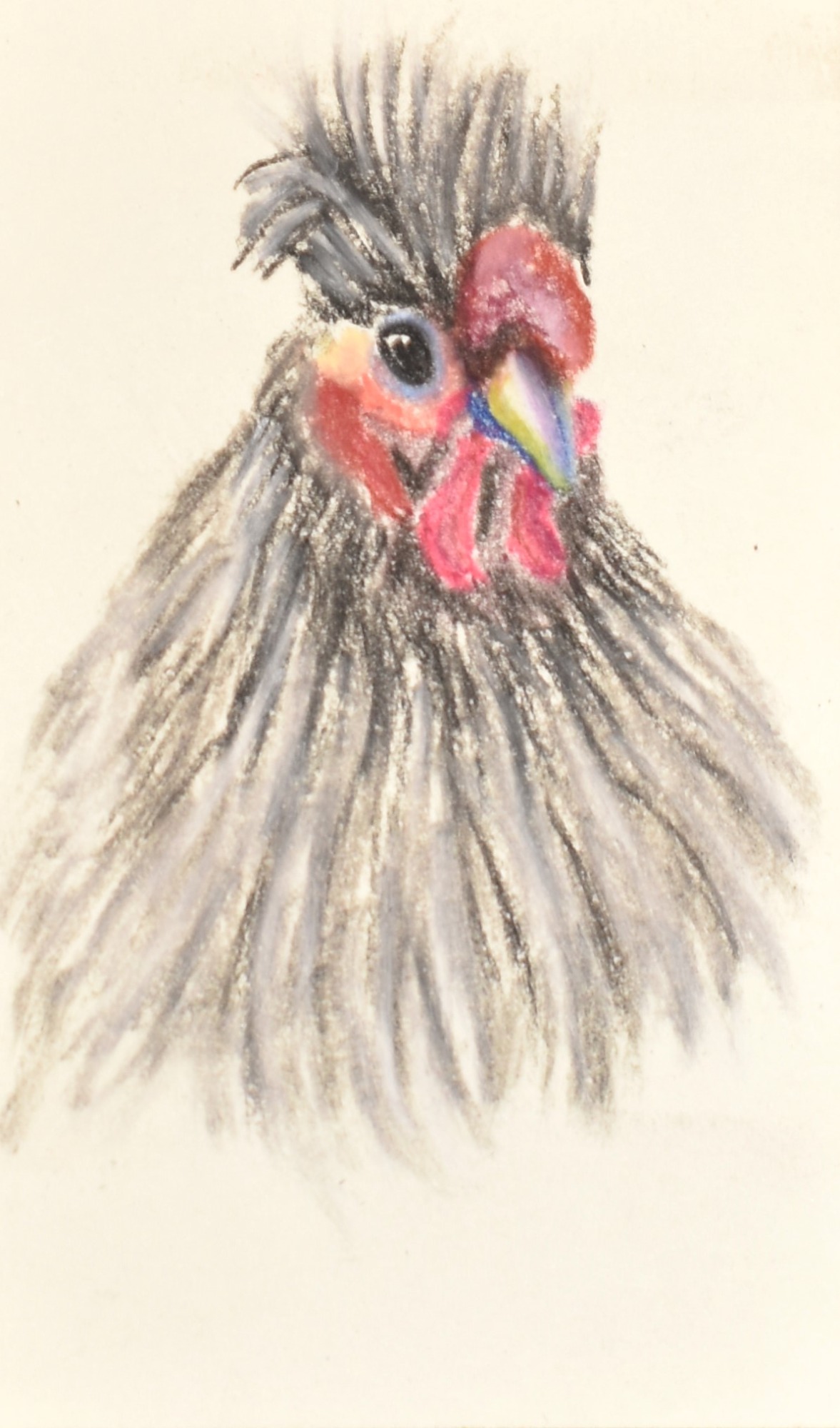 The hens are small, the roosters weigh only between 500-600 grams. Of course my chickens have access to a large hen house with a large outdoor area and in the summer they can also go freely on the lawn. They like to be hand-fed with corn. In the summer I pick berries, fruit and burn-nettles which I then dry or freeze so they get extra vitamins and sweets during the winter.