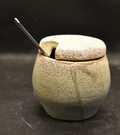 Efter den första bränningen läggs glasyr och /eller text på.